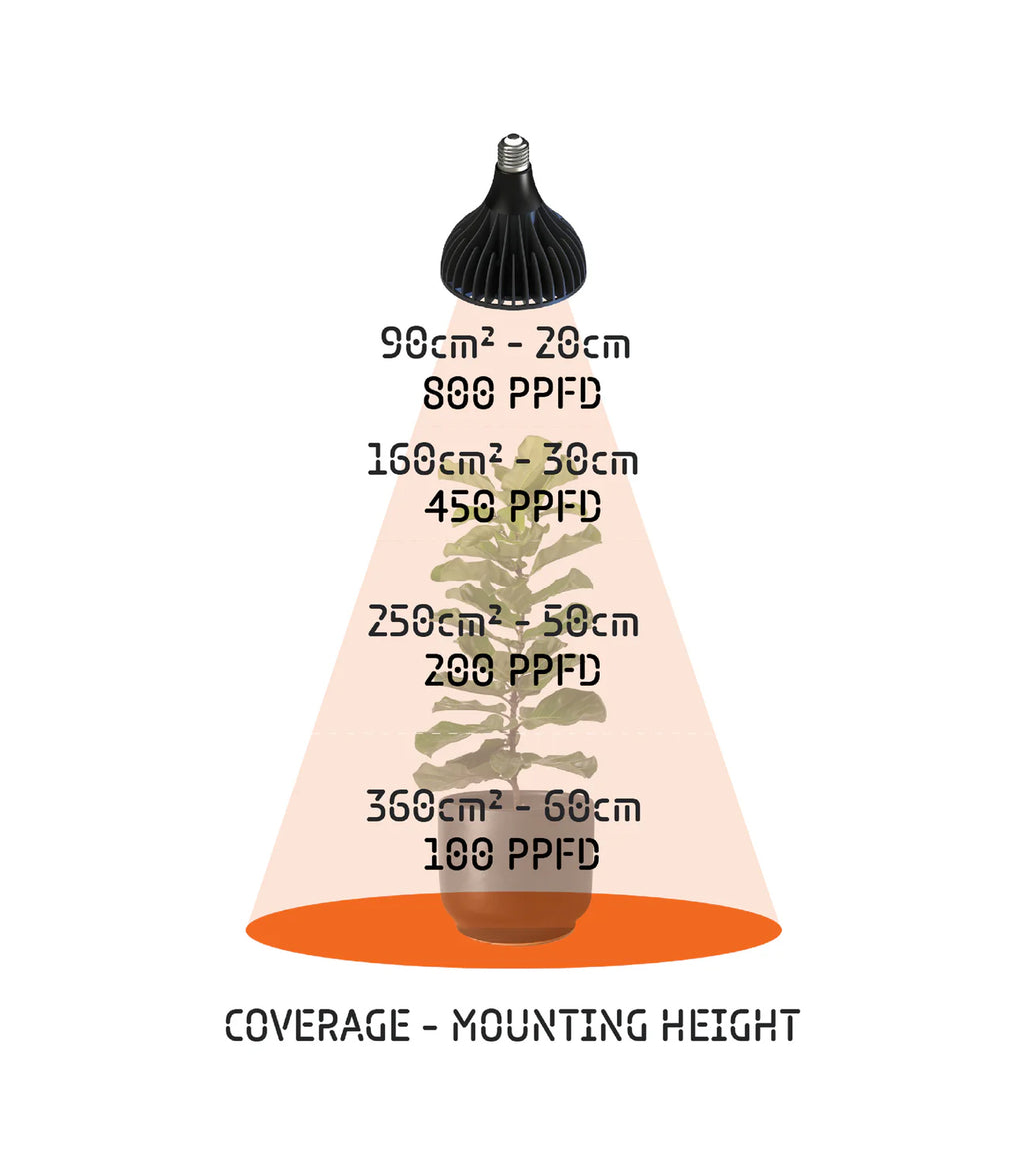 Boasting a balanced Full Spectrum at CCT 4800K and CRI 90+, these bulbs are ideal for a range of plants, from seeds and aromatics to decorative plants, greens, flowers, and fruit-bearing plants like tomatoes, cucumbers, and peppers. The spectrum is not only optimized for plant growth but also pleasant for the human eye, making it perfect for enhancing the beauty of your space.