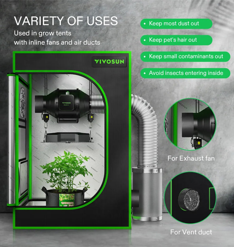 The Vivosun vent filter dust cover is specifically designed to keep dust and small contaminants out with a fine mesh while still delivering superior ventilation.